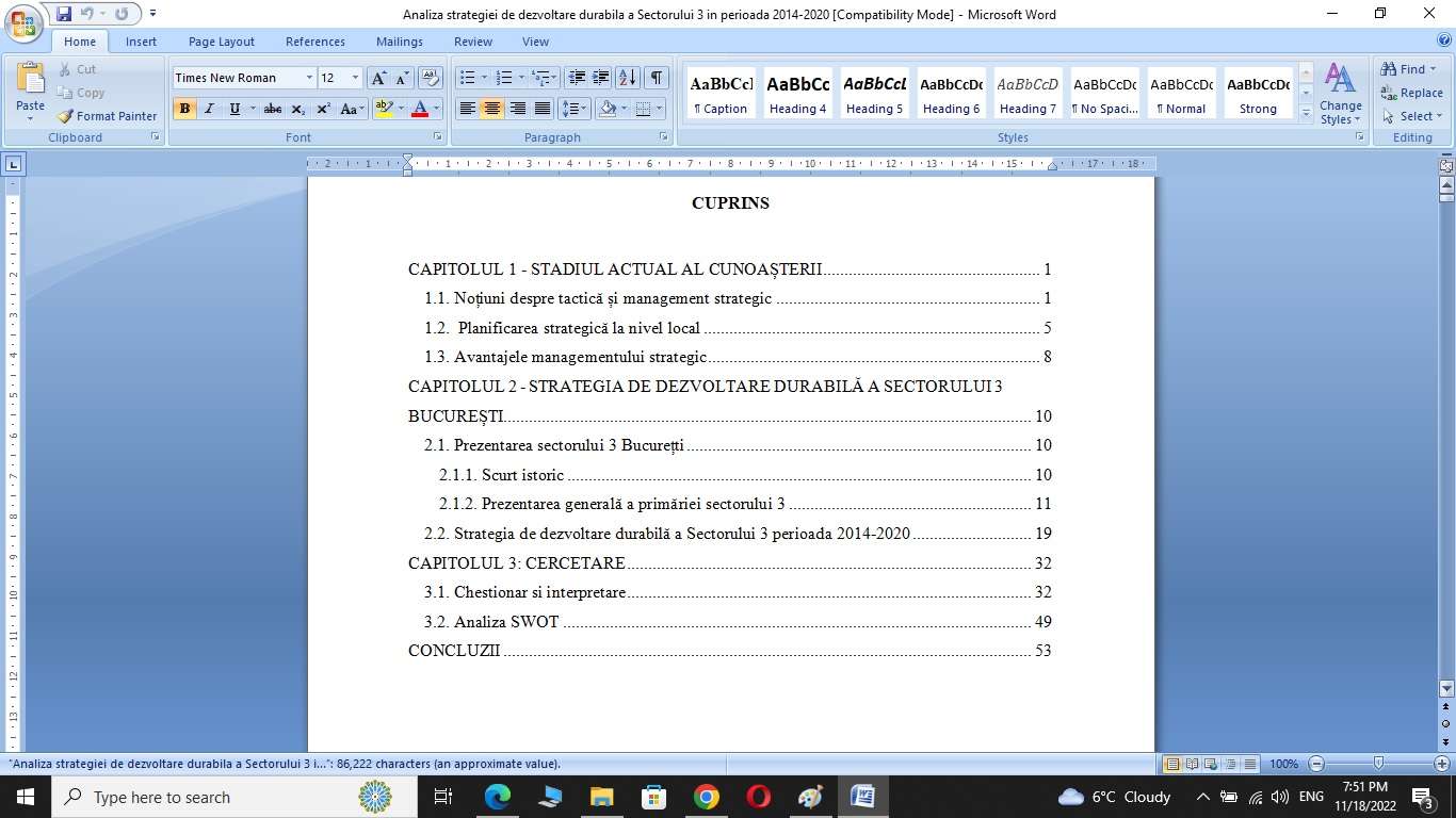 Analiza strategiei de dezvoltare durabila a Sectorului 3 in perioada 2014-2020. Asigurarea implementarii acestei strategii implică mobilizarea tuturor partilor interesate de Sectorul 3 al Municipiului București. De aceea, este sugerata o studiere de tip partenerial pentru întregul proces, atât între Primăria Sectorului 3 si structurile din subordine, cât si între aceasta si alte institutii publice implicate, dar si mentinerea unei legături strânse cu societatea civilă si cetătenii din sector, întrucât rezolvarea dificultătilor necesită participarea mai multor institutii si un ansamblu de măsuri succesive și complementare. Desi coordonarea proiectelor și atingerea țintelor asumate sunt în responsabilitatea Primăriei, metodele și instrumentele de intervenție ale acestuia sunt limitate. Pentru o dezvoltare unitară, cu beneficii pentru toti actorii implicati, proiectele stabilite necesită formarea unor parteneriate, dar si acțiuni independente ale partenerilor care să contribuie la un obiectiv comun.
