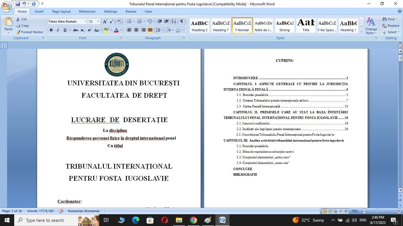 Am ales această lucrare deoarece am constatat faptul că înființarea TPII a suscitat o serie de critici din partea juriștilor și a unor factori politici, care au considerat că nu este firesc ca o instanță jurisdicțională să fie creată printr-o simplă rezoluție a Consiliului de Securitate, iar nu printr-un tratat elaborat și adoptat de state, în baza unei hotărâri a Adunării Generale a ONU. Argumentele menționate au determinat pe unii specialiști – așa cum vom arăta și în capitolele lucrării – să considere această instanță ca fiind mai mult un organism politic decât un organism jurisdicțional, având în vedere faptul că acest Consiliu de Securitate nu are astfel de competențe.