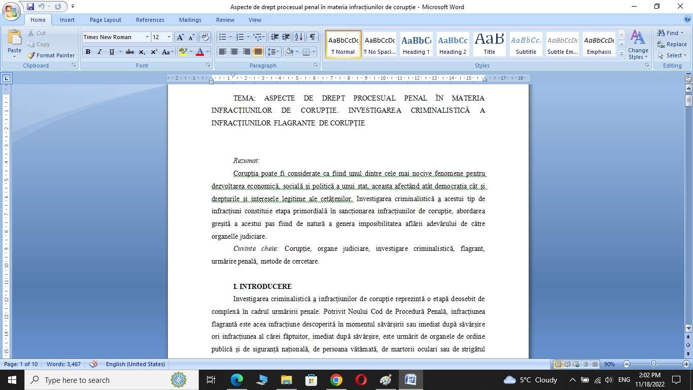 Aspecte de drept procesual penal în materia infracțiunilor de corupție. Corupția poate fi considerate ca fiind unul dintre cele mai nocive fenomene pentru dezvoltarea economică, socială și politică a unui stat, aceasta afectând atât democrația cât și drepturile și interesele legitime ale cetățenilor. Investigarea criminalistică a acestui tip de infracțiuni constituie etapa primordială în sancționarea infracțiunilor de corupție, abordarea greșită a acestui pas fiind de natură a genera imposibilitatea aflării adevărului de către organelle judiciare.