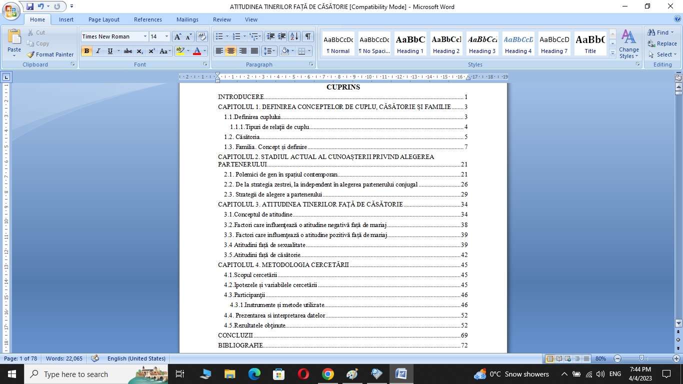 3.3 Factori care influenţează o atitudine pozitivă față de mariaj 42