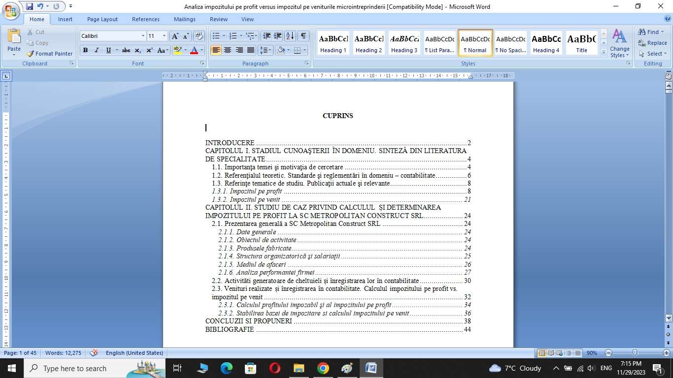 CAPITOLUL II. STUDIU DE CAZ PRIVIND CALCULUL ȘI DETERMINAREA IMPOZITULUI PE PROFIT LA SC METROPOLITAN CONSTRUCT SRL.. 24
