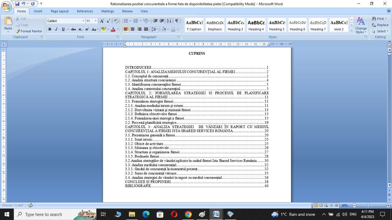4.3.1. Gradul de concurenta la momentul prezent 58